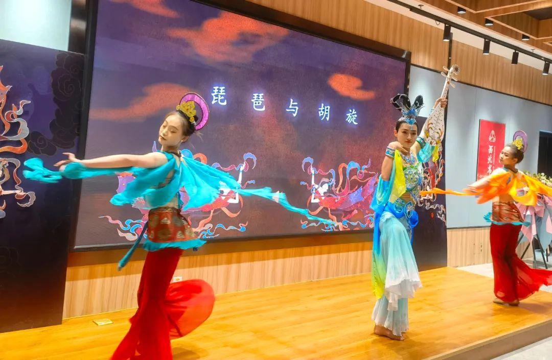見面會現(xiàn)場,作者介紹了本書創(chuàng)作歷程,并通過“形、神、氣、韻”“抻、曲”“舞姿控制”“四臂觀音”“四人飛天”“胡旋與琵琶”等組合精彩紛呈的表演,使讀者更加直觀地了解本書的主要內(nèi)容和敦煌舞蹈的文化內(nèi)涵,感受敦煌舞蹈傳遞出的藝術(shù)價值、文化素養(yǎng)和無窮的魅力。
