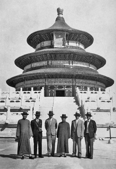 1935年5月9日,天壇圜丘壇開工,朱啟鈐、梁思成、劉敦楨、林徽因等古建專家,作為工程的技術(shù)顧問(wèn),楊廷寶則以基泰工程司總建筑師的身份指導(dǎo)工程實(shí)施的全過(guò)程。圖為祈年殿修繕完工紀(jì)念照。資料圖片
