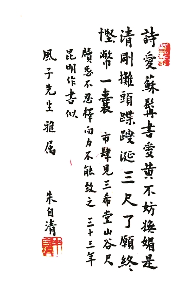 1946年春,朱國華調至四川敘永,他收到了哥哥手書的詩稿《寄三弟敘永》。朱自清深情追憶了弟弟為他轉移藏書的往事:“鐵鷲肆荼毒,鄰室無遺痕。賴汝移藏書,插架今紛綸……”兄弟二人因愛書護書情更濃。