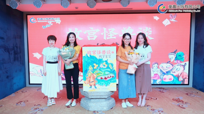童趣出版有限公司總經理史妍(左一)、作者常怡(左二)、插畫作者譚諾(左三)、童趣出版有限公司總編輯劉玉一(右一)為《故宮怪獸談》揭幕。