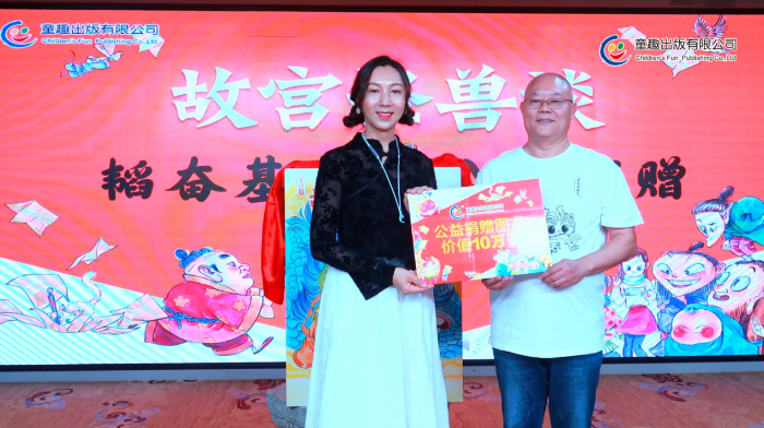分享會上,童趣出版有限公司向韜奮基金會捐贈了《故宮怪獸談》及世界名著等價值10萬碼洋的作品。插畫師譚諾專門為韜奮基金會創作了公益閱讀畫作,永久免費授權韜奮基金會作為公益宣傳使用。