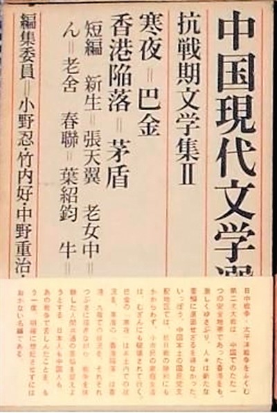 日文《中國現代文學選集》第8卷,日本平凡社1963年版
