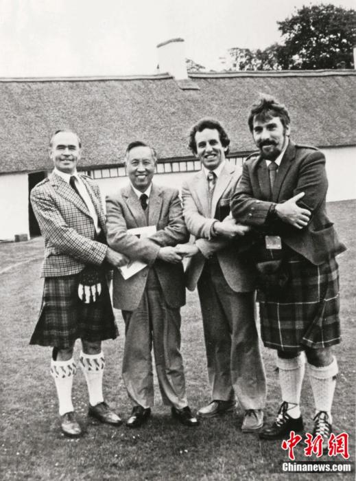1982年7月,王佐良(左二)在蘇格蘭詩人彭斯的故鄉歐文城。王佐良是最早譯介彭斯的譯者之一。中新社發 受訪者供圖