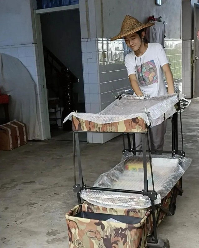 頭上戴著斗笠,臉上掛著靦腆的笑,推著裝滿課外書的迷彩小推車,趕往外婆家附近的集市擺攤。最近,14歲少年王子悅開辦“流動圖書館”的視頻感動了很多網友。