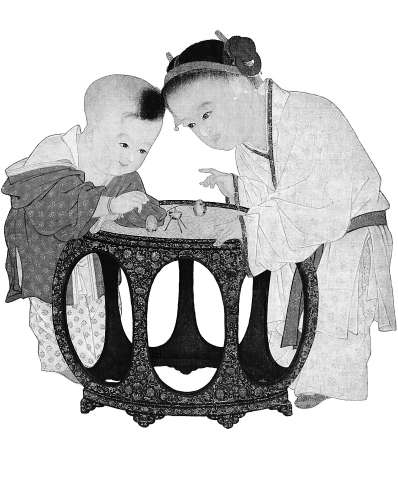 秉燭夜游是大人的游戲,那么古代的孩子玩什么呢?《陪孩子看中國畫》專門介紹了以兒童游戲為主題的圖畫,其中《秋庭戲嬰圖》是宋代描寫童心的經典畫作,刻畫了姐弟倆玩推棗磨的游戲。棗磨的制作原料非常簡單,由三顆鮮棗、三根短棍和一根長棍組成。這是古代北方秋天棗子成熟之后,孩子們經常玩的一種自制玩具。孩子身后還有很多其他商業制作的玩具,但姐弟倆卻專注玩著自制的玩具。田玉彬感慨:“姐弟倆專注欣悅地玩推棗磨,而把一堆商品玩具丟在身后,這看似無意的對比想來是出于畫家的精心安排,他或許是想說童心并不在乎精巧華貴,而在乎清新純潔。”