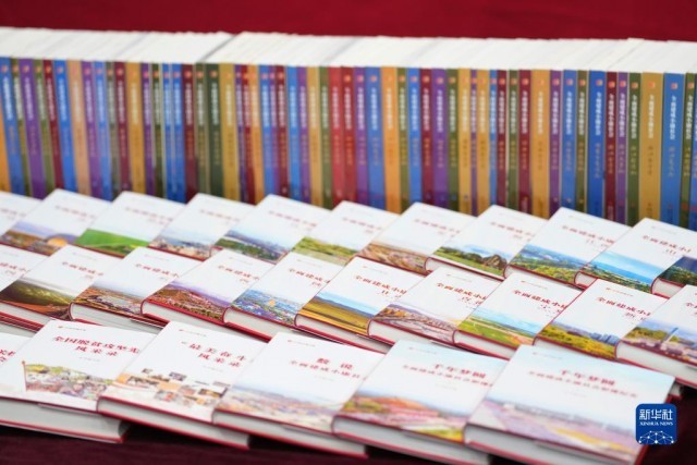 這是10月14日在北京拍攝的“紀錄小康工程”系列叢書。新華社記者 賈浩成 攝