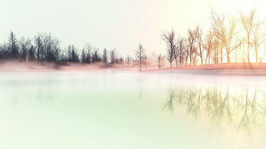 晨霧彌漫于天地之間,像天上垂下來的巨大紗帳,悄無聲息地籠罩著還沒睜開惺忪睡眼的鄉村和城市。初冬的霧,忽濃重,忽隱淡,雙手似可輕輕捧住,偏只是一握清涼。置身于霧中,感覺自己走進了白色空靈的仙境,妙曼飄逸。到處都是白茫茫的一片,沒有雪一樣純凈潔白,但比雪更富有詩意,因為一條若有若無的輕紗披上了一層若即若離的神秘感。