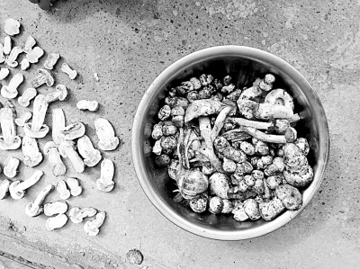 在縣城唯一的山珍市場內,專營蘑菇的個體戶不急不躁地守著攤位,面前是一堆堆清早收購來的散發著泥土芬芳的各色蘑菇……專程趕來的當地食客或偶爾路過的外地游客,看著如此新鮮的蘑菇,都會買上個十斤八斤,回去后用保鮮袋分裝在冰箱里隨吃隨拿,或者曬成干蘑菇吃得長久些。個頭大的切成薄片,晾曬在水泥地上;個頭小的用線串成串兒,掛在太陽下暴曬,幾天就好——若遇到陰天,也可以掛在爐火上熏烤。干蘑菇把山野里的芳香氣息集于一身,可謂一種脫俗的山珍野味,無論用來招待客人,還是捎帶給遠方的親友,都是非常不錯的選擇。