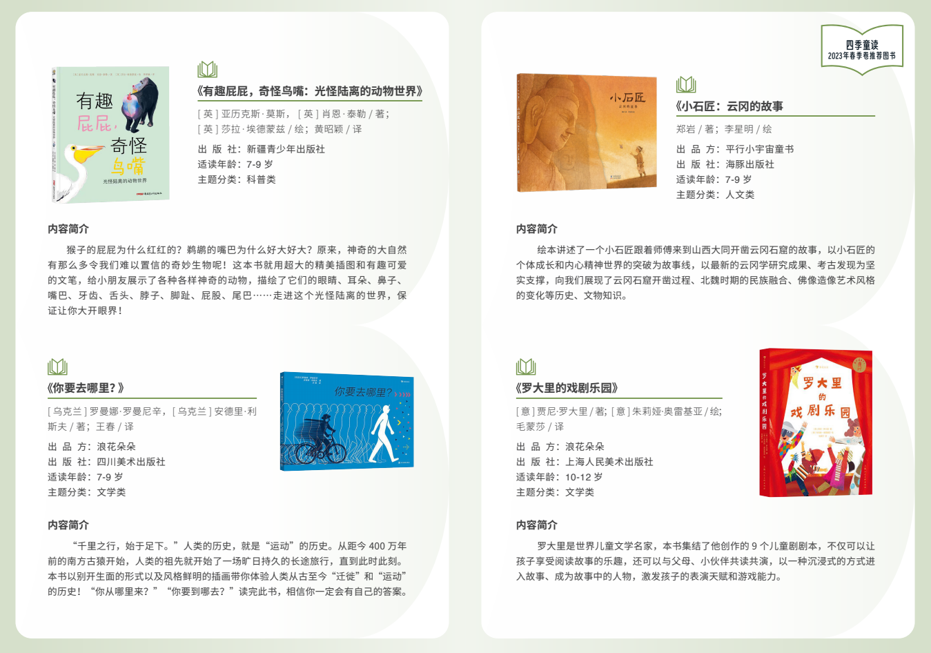 附:“四季童讀”春季卷推薦書單(圖片由國家圖書館提供)