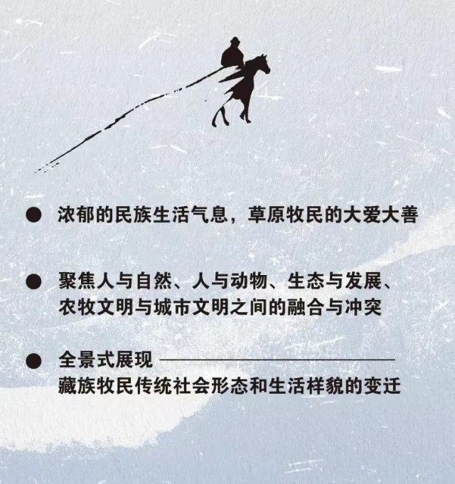 《雪山大地》將青藏高原幾十年來發生的改天換地,以及以“父親母親”為代表的三代建設者在這片土地上耕耘建設的日日夜夜,展現在讀者面前。人與自然、人與動物、生態與發展的主題貫穿始終,全景式地展現了藏族牧民傳統社會形態和生活樣貌的變遷。