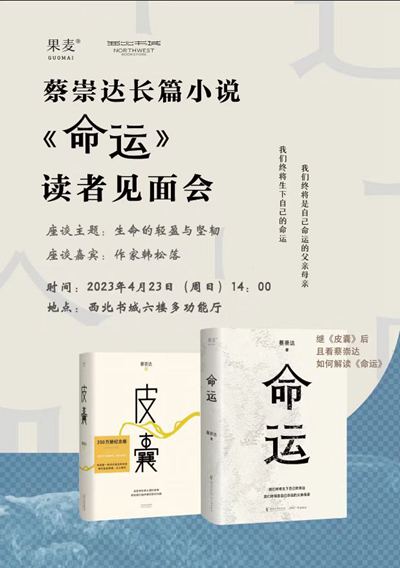 4月23日14點,蔡崇達新書《命運》簽售會將在蘭州西北書城舉行。