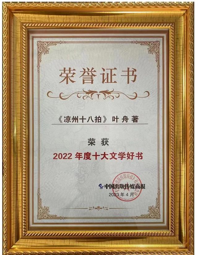 第十一屆春風悅讀榜年度頒獎典禮4月22日在浙江杭州舉辦,著名作家葉舟長篇小說《涼州十八拍》榮獲白銀獎。此外,4月21日由中國書刊發行業協會、中國新華書店協會、韜奮基金會等聯合發起的第十屆讀友讀品節上,《涼州十八拍》入選2022年度十大文學好書。
