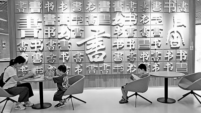 7月24日,家長帶孩子在位于呼和浩特市的內蒙古新華書店內閱讀書籍。丁根厚攝/光明圖片