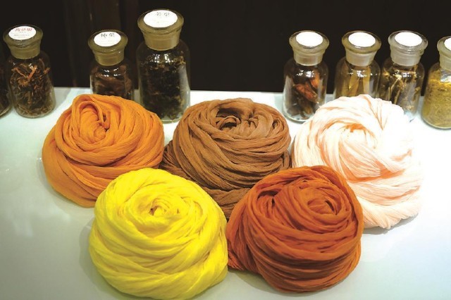 而與大多數(shù)傳統(tǒng)色彩研究者不同的是,曾啟雄極為重視實(shí)驗(yàn)考證。作為一位技藝精湛的染色家,其論著里介紹傳統(tǒng)染色的文本內(nèi)容及圖片,都是他親歷親為、反復(fù)實(shí)驗(yàn)后的成果,這也是該書最為精彩之處。在染色實(shí)驗(yàn)過程中,除了復(fù)原了傳統(tǒng)顏色的本來面貌外,作者還做出如下貢獻(xiàn):首先,通過大量實(shí)驗(yàn)印證了古籍記載的真?zhèn)危⒓m正了其中一些不實(shí)之處。比如,他通過在柘木里添加明礬、高溫染色后的結(jié)果,顛覆了以往認(rèn)為唐代帝王穿用的“柘黃”袍服是暗淡赭黃色的普遍認(rèn)知,印證其應(yīng)為類似明清時(shí)代帝王使用的明黃色。其次,使用不少篇幅介紹了不同的染料、媒介物等因素對(duì)于染色效果等的制約作用。以石榴皮作為染材為例,當(dāng)它與不同媒染劑,如明礬、鐵等進(jìn)行染色時(shí),則會(huì)形成由黃色到黑褐色的不同顏色。即使采用相同的染法,因棉麻絲綢等介質(zhì)迥異,也會(huì)染出不同顏色等。最后,該書對(duì)于各種染料特點(diǎn)、工藝程序、顏色效果等的表述,較其他相關(guān)論著也更加纖悉無遺和引人入勝,如關(guān)于紫膠蟲的染色工序的詳盡介紹等,讓讀者有一種身臨其境、意欲參與的感受。