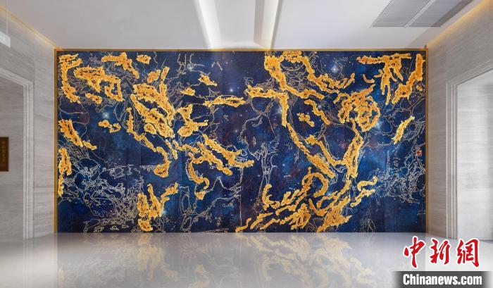 記者了解到,這幅熔銅壁畫采用國家級非遺銅雕技藝,結(jié)合熔銅藝術(shù)、釉彩著色等創(chuàng)新技藝制作而成,從設(shè)計、制作、誕生,全程歷時一年,難度很大。壁畫以朱炳仁手繪的星空“云水墨”制作,用大面積深藍(lán)宇宙為底,采用熔銅藝術(shù)構(gòu)成繁星點(diǎn)點(diǎn)。