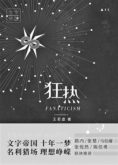 2010年10月發表于《萌芽》雜志的《文字帝國·微生》,是王若虛“文字帝國”的首秀。這篇小說頗具少年維特之煩惱色彩,講述了文學青年的青春躁動與命運沉浮。隨后發表的系列小說《瘋女王》《小宇宙》《同小姐》,到《沒有書的圖書館》《光環》《腰封無用》等具有一致性和連貫性——它們全部聚焦文學青年的成長史,描寫他們在面對選擇時的焦慮與茫然、沖動和欲望,借以展現21世紀初的“青春”的文學史。《狂熱》作為這一系列最新的長篇小說,將眼光投向聚光燈外的無名作家和小眾作家,以后青春式的視角重新回到21世紀初的文學現場。新作中,王若虛采用了一種更加貼近當下與現實的維度重新審視當時的文學創作,展示時代變化中理想與欲望的糾葛,緬懷屬于“80后”一代的特殊記憶。