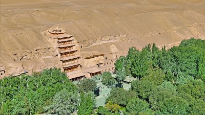 莫高窟坐落于河西走廊西部盡頭的甘肅敦煌,是世界文化遺產,也是中華民族的文化藝術寶藏。圖為9月26日拍攝的莫高窟窟區。