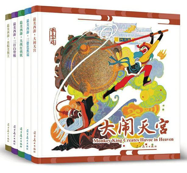 “最美西游”系列叢書(遼寧美術出版社)包括《大鬧天宮》《哪吒鬧海》《三打白骨精》《三借芭蕉扇》《大戰紅孩妖》和《真假美猴王》6部,是20世紀80年代遼寧美術出版社的經典之作——彩色連環畫《西游記》的再版。