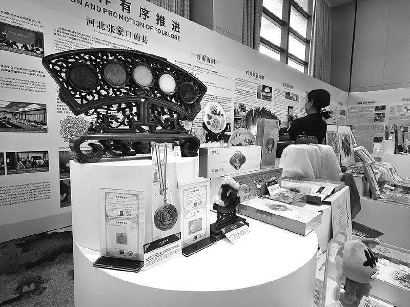 民間文藝版權(quán)保護與促進試點工作推進情況展上,河南南陽展位展示了版權(quán)開發(fā)與保護在玉雕、艾灸產(chǎn)品包裝設(shè)計、烙畫等方面的應(yīng)用。 本報記者 隋明照 攝