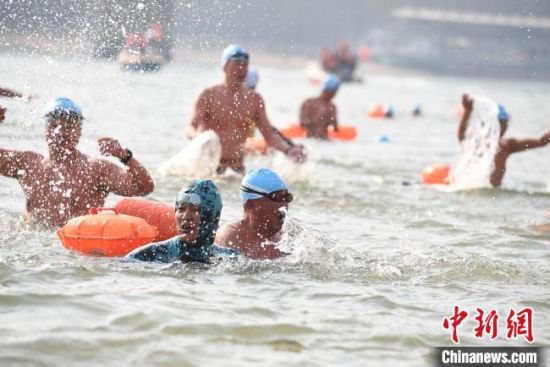 1月1日,“蘭州市第31屆元旦黃河冬泳表演活動”吸引了全國300余名“泳士”參加。 楊艷敏 攝