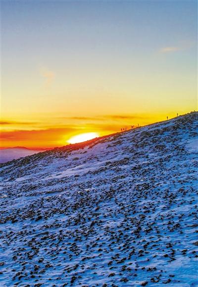 元旦當日早上6時30分,記者乘坐景交車前往巴爾斯圣山核心景區觀看日出,在抵達海拔3900米后徒步上山迎接2020年第一縷陽光。跨過及膝的雪,踏過堅硬的碎石堆,溜過光滑的冰面,抵達了海拔4100米最佳觀賞日出點,等待著新年第一縷陽光刺破蒼穹、越過遠處的雪山之巔照耀大地。7時50分左右,陽光沖破云層,遠處的雪山像是被鑲了一道金邊,此時只覺心靈與大山融為了一體,只有靜靜地等待。不知不覺中,陽光逐漸刺眼起來,這才意識到2020年第一抹陽光,承載著令人希冀的美好愿望已來到我們身旁。 蘭州晨報/掌上蘭州記者 黃芃