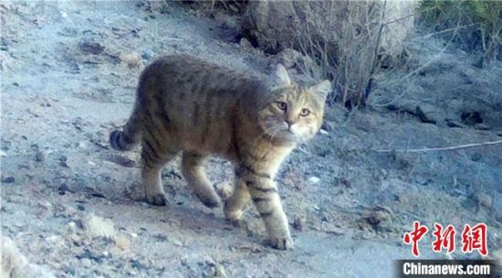 從保護(hù)區(qū)紅外相機(jī)監(jiān)測中,科研人員還首次發(fā)現(xiàn)了瀕危物種荒漠貓的照片和視頻。 敦煌西湖國家級自然保護(hù)區(qū)管理局供圖