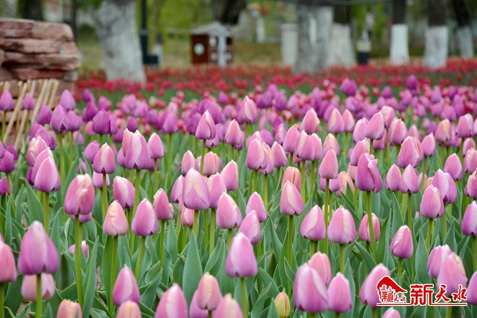在經歷了一個漫長的嚴冬之后,馬跑泉公園的25萬余株郁金香和5萬余盆各類時令鮮花在麥積大地上郁郁蔥蔥的綻放著。