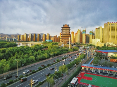 蘭州地處黃河上游,是黃河唯一穿城而過的省會城市,多年來著力打造的百里黃河風情線,依托黃河兩岸風光和名勝古跡,融山水、人文勝跡于一體,已成為蘭州城市名片之一。在創建文明城市過程中,將代表蘭州主題文化的“黃河”精神通過打造黃河風情線為主線為城市軸線注入靈魂,不斷提升黃河風情線文化品質,突出蘭州作為“黃河明珠”的地域特色與傳統文化,營造了一批富有特色和內涵的城市標志性景觀。圖為坐落在黃河風情線上新建的標志性景觀“黃河樓”。