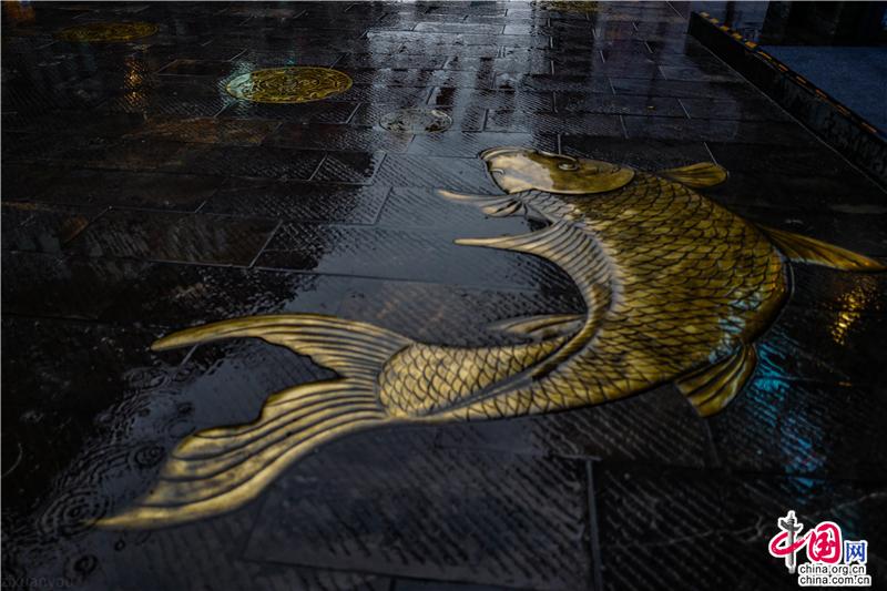 地上的銅質錦鯉是“如魚得水”顯得靈動而逼真起來……