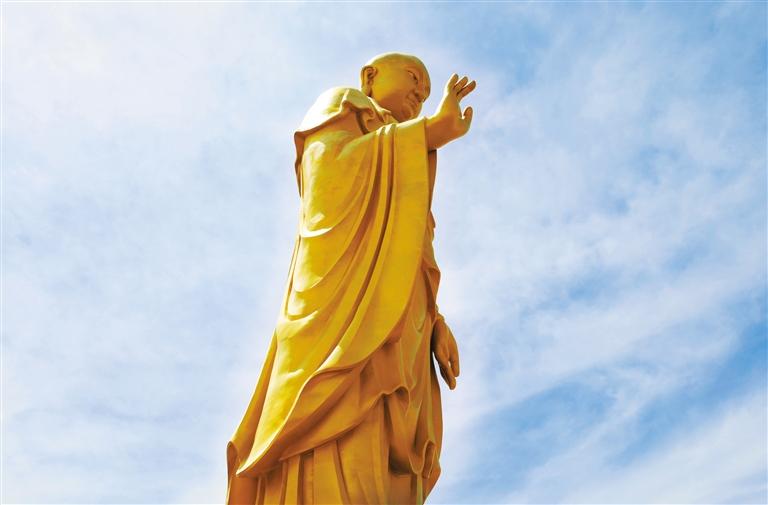 一座金燦燦的大佛造像矗立在山頂,慈眉善目,俯瞰著山下的苦水川。