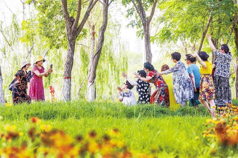 公園內馬鞭草種植量達20多萬株,還有金雞菊、天人菊、松果菊、金娃娃萱草、月季等宿根花卉和醉蝶、波斯菊、百日草等,花卉種植面積7萬多平方米,占公園總面積的60%以上。絢麗多彩的大色塊的花景組合配以公園獨特的運動主題,呈現出動靜有致的濱河“花海”,深受廣大市民的喜愛,成為黃河風情線新晉網紅“打卡”點。