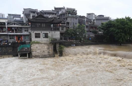 受持續強降雨影響,4A級景區乾州古城積水嚴重