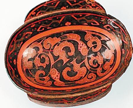 這一時期漆器上的幾何紋畫,主要有菱形紋、三角紋、圓圈紋、平行線紋等。如武威磨嘴子4號漢墓出土的漆缽,其腹、底部交接處繪二方連續菱格紋,菱格內填圓圈紋和渦漩紋,口內次要部位則繪幾何平行線紋。