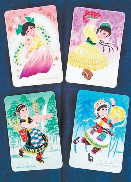 上世紀70年代,國家把進出口公司產品當作“拳頭”產品,為國家換取外匯。甘肅省也和其他省份一樣,作了積極的努力,省進出口公司于1976年制作了四枚一套的《慶豐收》年歷片,以漢族、維吾爾族、藏族、壯族少女為圖案,表現了良好的藝術創作風格。