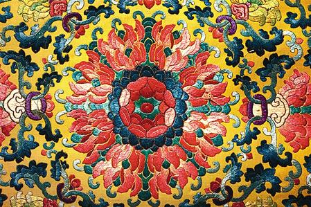 明黃江綢彩繡云蝠紋座具(局部) 沈陽故宮博物院藏