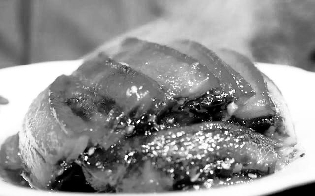 用青泥黑豬制作的紅燒肉并不像南方的菜系那樣注重糖色,在燒制過程中也沒有填入許多祛腥的調料,讓青泥黑豬特有的香味自己發散出來,在口齒間縈繞不絕,這道菜火候也相當好,入口即化,那種“熔融”的快感讓味蕾瞬間綻放。