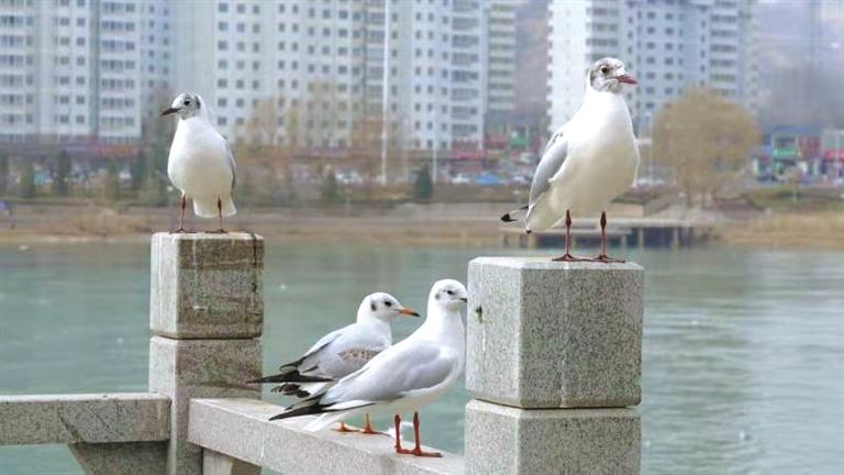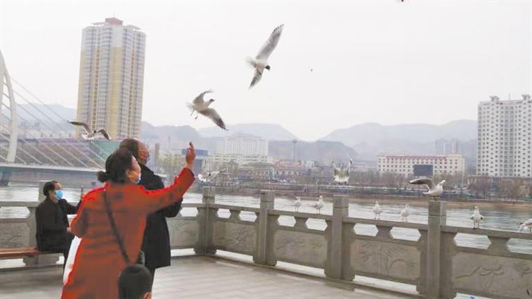 冬季劉家峽流出的黃河水清澈見底,永靖縣休閑公園里紅嘴鷗悠閑地在河面飛舞……近日,成群結隊的快樂小精靈不遠萬里如約而至,在黃河之濱避寒、撒歡,上下翻飛的身影給冬日的小城增添了一抹靚麗的風景。