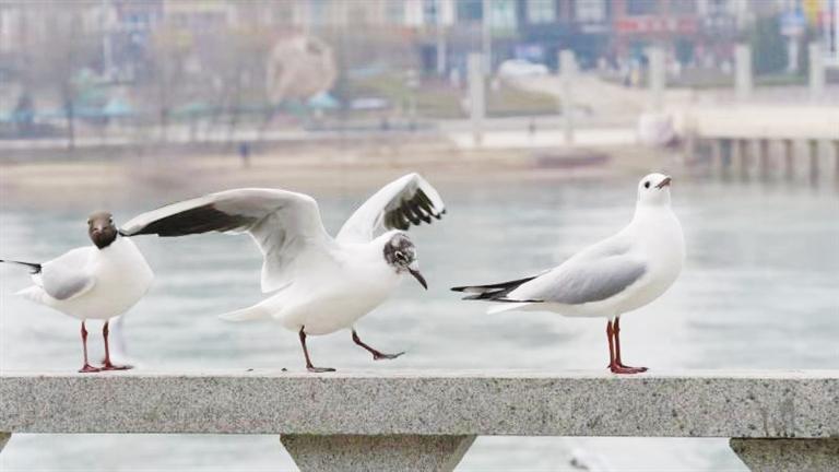 近年來,隨著黃河生態環境不斷改善及人們愛鳥、護鳥的生態意識不斷增強,越來越多的野生鳥類前往劉家峽越冬。紅嘴鷗作為一種對生態環境和河流水質要求較高的鳥類,每年與永靖相約,沿河居民來到河邊觀鳥喂鳥,紅嘴鷗等鳥類或駐足歇息,或追逐戲水,或悠閑覓食,或盤旋飛翔……上演著人鷗和諧相處的生態美景,各地的攝影愛好者也紛紛前去拍攝采風。