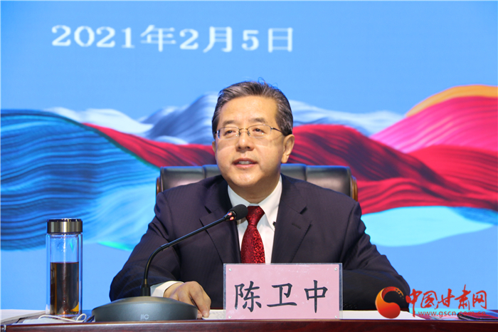 中國甘肅網2月5日訊 (本網記者 張蘭琴 文/圖)2月5日上午,2021年全省文化和旅游局長視頻會議在省會蘭州召開。與往年不同的是,這次會議貫徹落實省委、省政府的要求,蘭州以外的13個市州以視頻會議形式參會。整個會議簡潔、務實、高效,旨在學習貫徹全國宣傳部長會議、全國文化和旅游廳局長會議、省委十三屆十三次全會暨省委經濟工作會議、省“兩會”和全省宣傳部長會議精神,總結2020年主要工作,安排2021年重點任務。甘肅省委宣傳部副部長,省文旅廳黨組書記、廳長陳衛中在會上講話,向全省“文旅鐵軍”發起號召,“干字當頭”的決心引發全場熱烈反響。