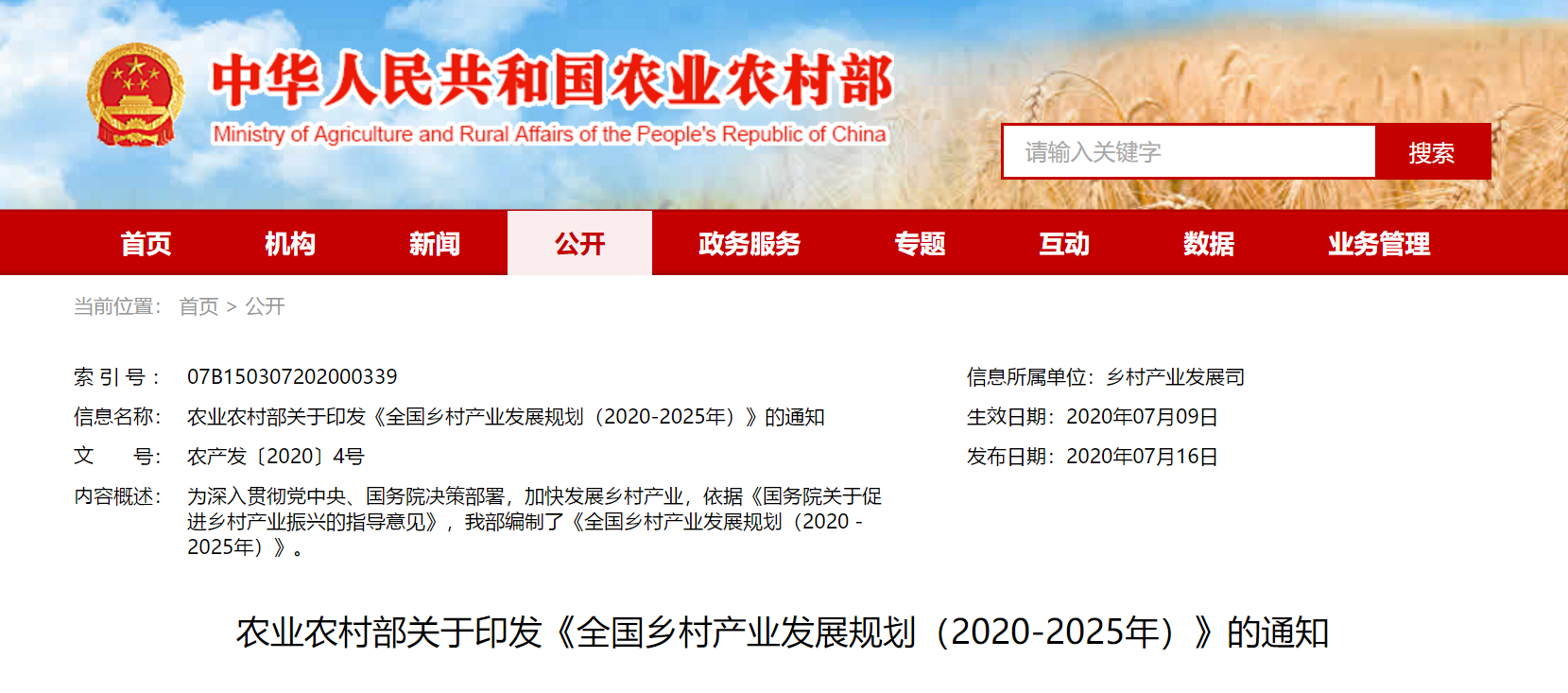 去年7月9日,農(nóng)村農(nóng)業(yè)部正式下發(fā)《全國(guó)鄉(xiāng)村產(chǎn)業(yè)發(fā)展規(guī)劃(2020-2025年)》(以下簡(jiǎn)稱《規(guī)劃》。《規(guī)劃》稱,近年來,農(nóng)村創(chuàng)新創(chuàng)業(yè)環(huán)境不斷改善,新產(chǎn)業(yè)新業(yè)態(tài)大量涌現(xiàn),鄉(xiāng)村產(chǎn)業(yè)發(fā)展取得了積極成效。但存在產(chǎn)業(yè)鏈條較短、融合層次較淺、要素活力不足等問題,亟待加強(qiáng)引導(dǎo)、加快發(fā)展。根據(jù)《國(guó)務(wù)院關(guān)于促進(jìn)鄉(xiāng)村產(chǎn)業(yè)振興的指導(dǎo)意見》要求,為加快發(fā)展以二三產(chǎn)業(yè)為重點(diǎn)的鄉(xiāng)村產(chǎn)業(yè),制定本規(guī)劃。