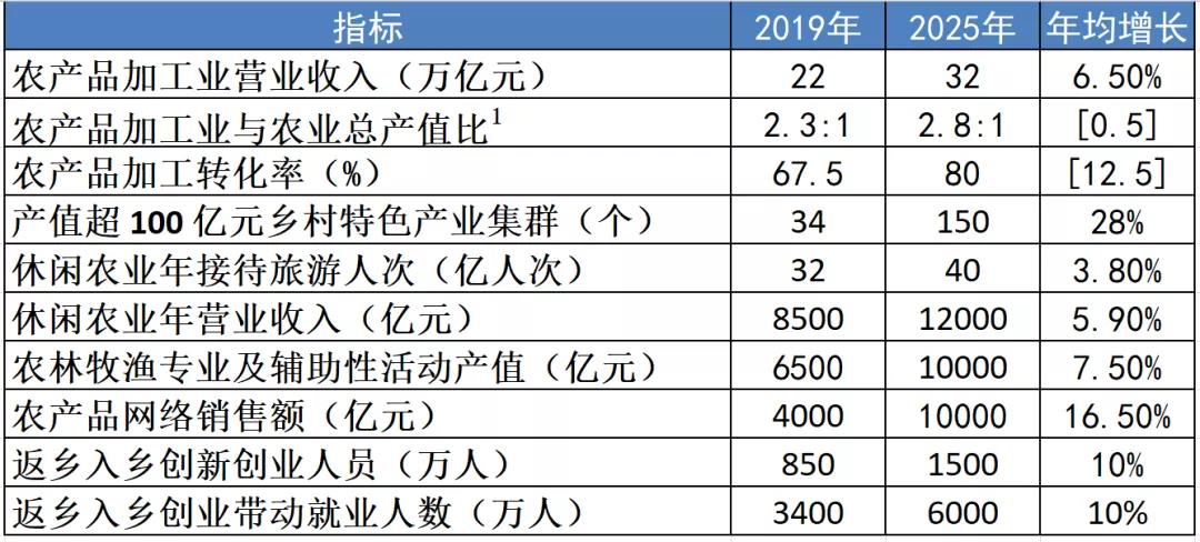 到 2025 年,鄉(xiāng)村產(chǎn)業(yè)體系健全完備,鄉(xiāng)村產(chǎn)業(yè)質(zhì)量效益明顯提升,鄉(xiāng)村就業(yè)結(jié)構(gòu)更加優(yōu)化,產(chǎn)業(yè)融合發(fā)展水平顯著提高,農(nóng)民增收渠道持續(xù)拓寬,鄉(xiāng)村產(chǎn)業(yè)發(fā)展內(nèi)生動(dòng)力持續(xù)增強(qiáng)。