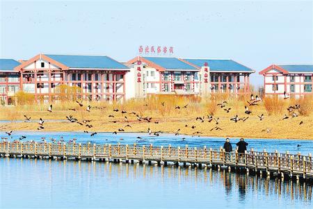 近日,張掖國家濕地公園藍天碧水,百鳥翔集,成為市民游覽觀光的理想之地。 新甘肅·甘肅日報通訊員 楊永偉