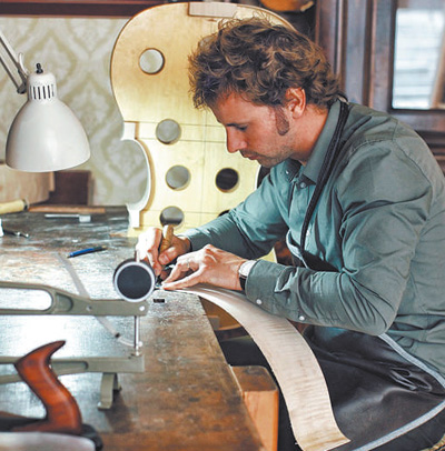 選材、拼板、刮板、合琴……在古樸的工作室里,費隆認真地打磨每一把提琴。手工制作一把提琴要經過近10道工序,每道工序又有諸多細節。即便是一位熟練的制琴師,打造一把小提琴也要花費200多個小時。像費隆這樣的提琴工作室在克雷莫納市有超過150家,制琴師以手工方法制造質量上乘的提琴,來此買琴的商家和藝術家不計其數。