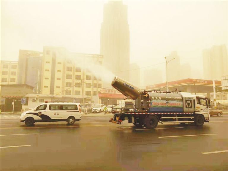 噴霧車正在降塵作業。通訊員 豆愷霞 攝