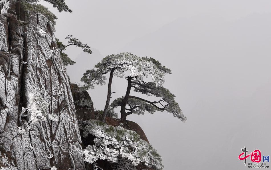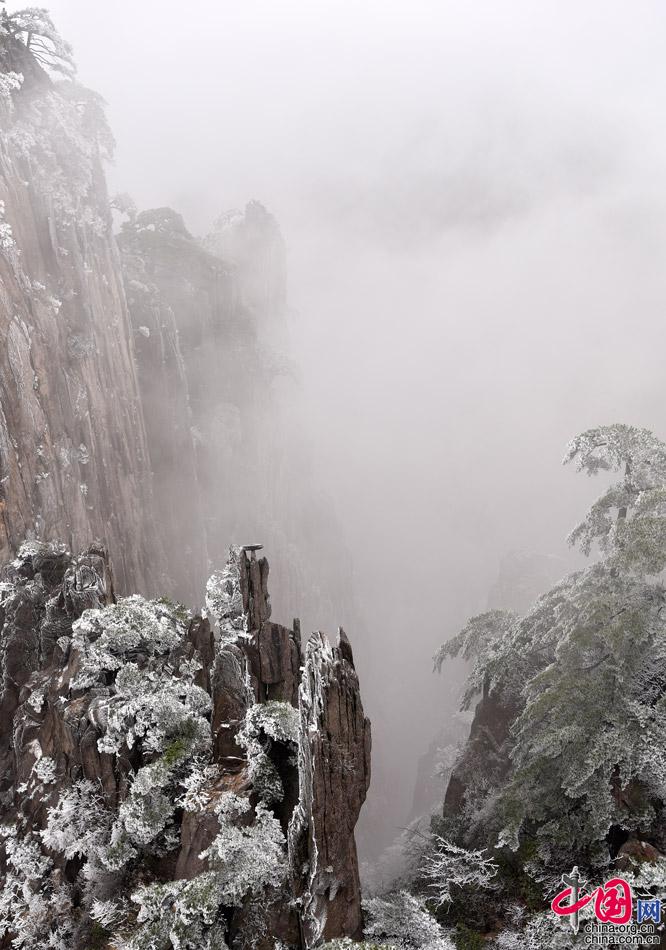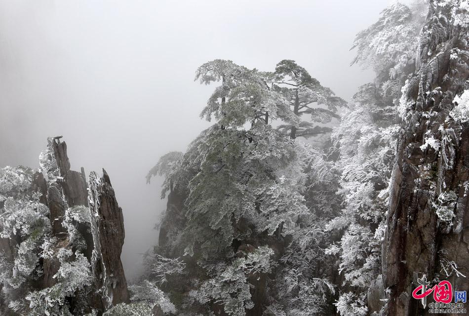 原標題:陽春三月黃山風景區出現霧凇奇觀(高清大圖)