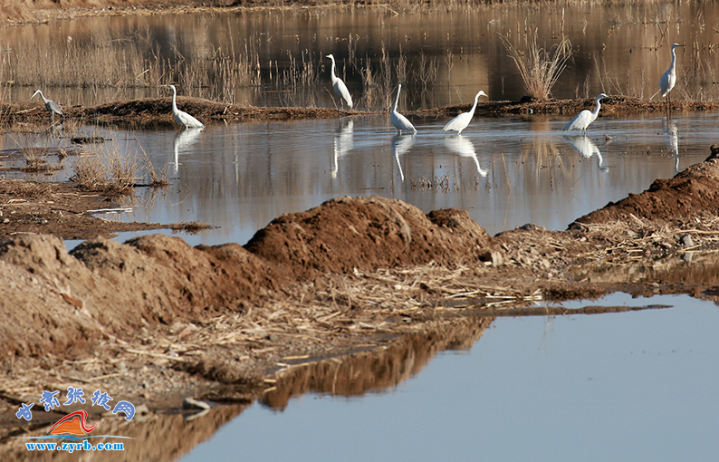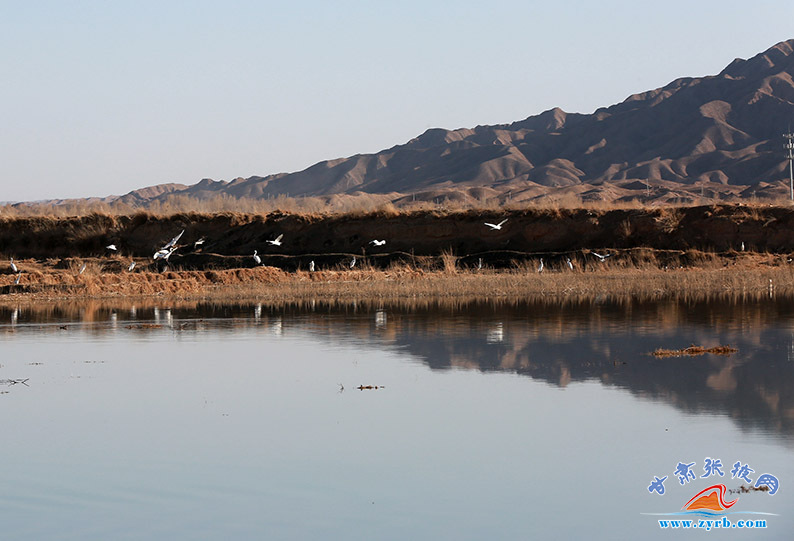 初春時節,山丹縣祁家店水庫濕地成百上千的天鵝、白鷺、灰鶴、野鴨等幾十種鳥類成群結對,引頸高歌,或追逐覓食,或結伴翱翔,成為一道亮麗的風景線。
