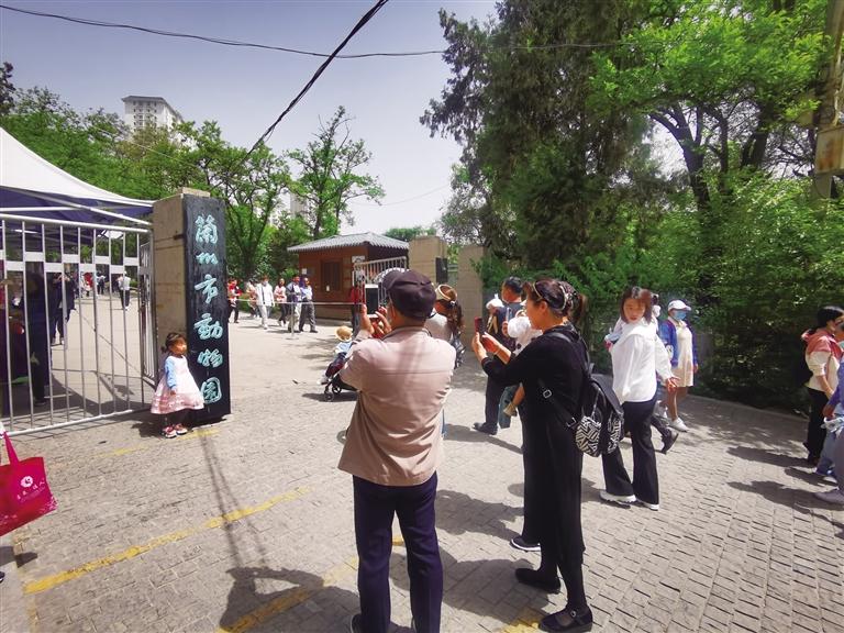 “我要和動物園的大門合影” “快來給我和‘蘭州市動物園’的大牌子拍張照”……5月7日10時許,前往蘭州市動物園游玩的市民絡繹不絕,大門口懸掛著的略顯斑駁的黑底綠字的“蘭州市動物園”的門牌,仿佛是最能觸動人們記憶的“坐標點”,大家排隊再和它照張相成為進園的固定儀式。