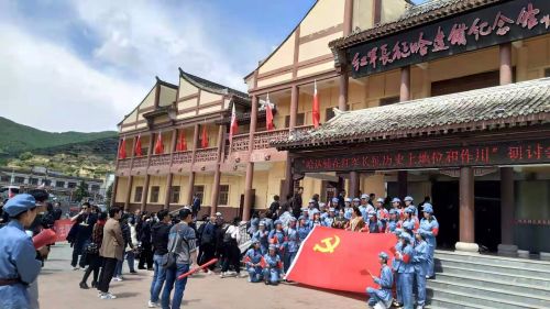 國內旅行社組團650名游客重走長征路,參觀紅軍長征哈達鋪紀念館,品紅色美食,當紅色演員,住紅色賓館,看篝火晚會,唱紅色歌曲,聽紅軍故事,接受愛國主義教育……