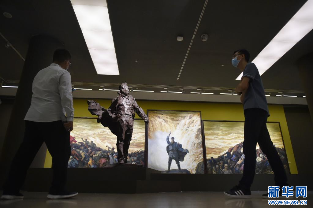 2021年8月14日,觀眾在中國美術館參觀展出作品。 8月13日,由中國美術館主辦的“在激流中前進——中國美術館藏黃河題材美術精品展”在北京中國美術館拉開帷幕。該展覽是文化和旅游部2021年度全國美術館館藏精品展出季項目,也是中國美術館“典藏活化”系列展之一,共展出中國美術館藏104位藝術家創(chuàng)作的中國畫、油畫、雕塑等131件作品。 新華社記者 魯鵬 攝