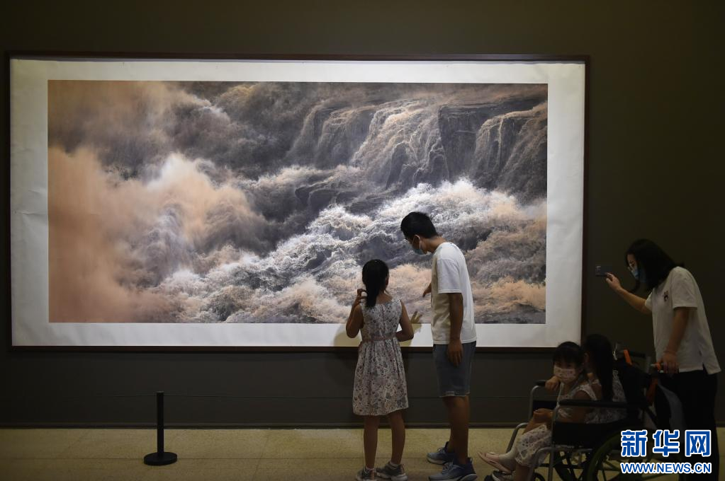 8月14日,觀眾在中國美術館參觀展出作品《大河史詩》。 新華社記者 魯鵬 攝